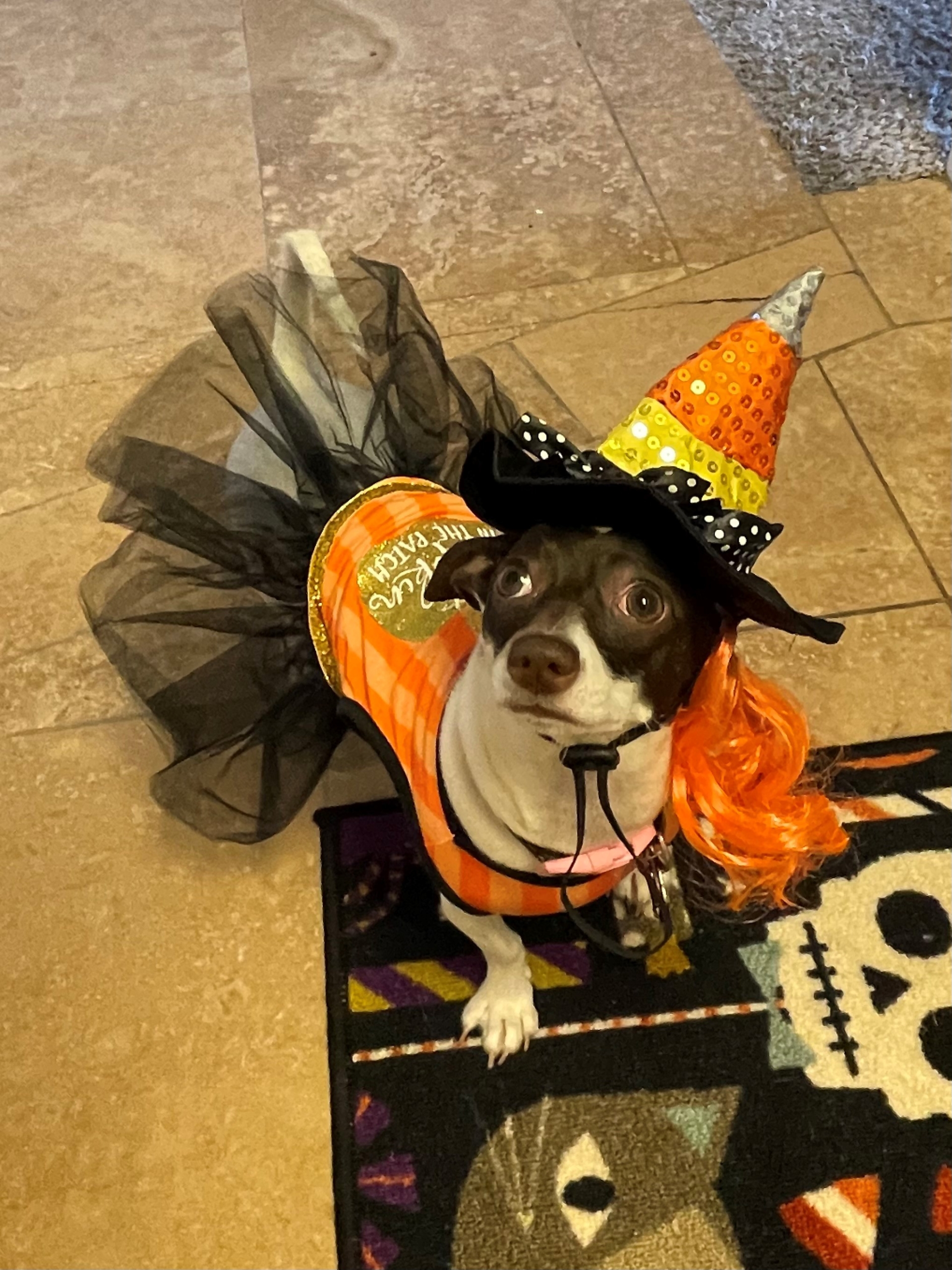 Melania is a 2 year old Chiweenie mix that loves to dress up! She loves nothing more than to be cuddling in the sofa with her human Asley. Her favorite treats include strawberries and anything in her Bark box!